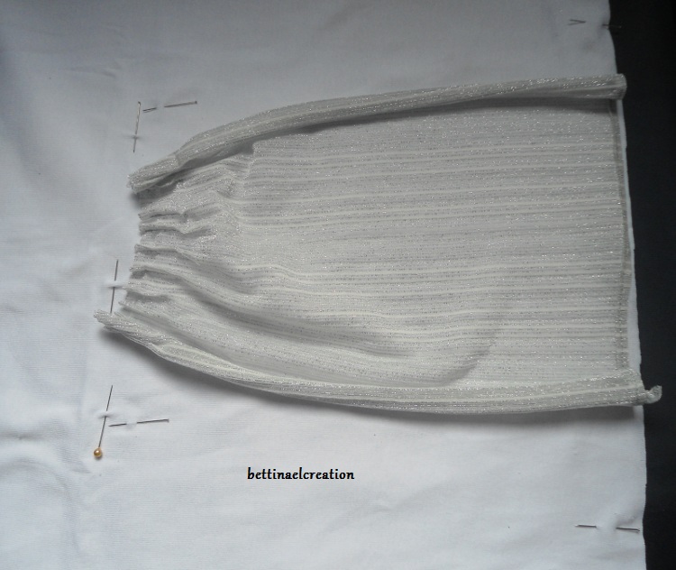 Ne pas oublier les 1 cm de couture de chaque côtés, il me reste les 25 cm sur le bas du voile, mais le haut à réduit à 17 cm avec les plis.